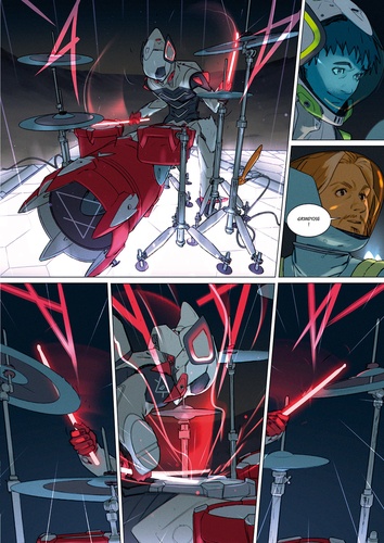 LA TERRE, DANS UN FUTUR PROCHE. LA POLLUTION SONORE MENACE DE DETRUIRE LA PLANETE. ET SI LE DERNIER ESPOIR DE L'HUMANITE ETAIT LE ROCK ? A la surface de la Terre, des espaces immenses sont recouverts par le S. O. T. W. (Smoke On The Water). Ce phénomène, lié à la pollution sonore, efface la vie là où il passe... La seule option pour le contenir vient d'une mégacorporation dont l'objectif est d'envoyer dans l'espace un supergroupe de rock pour enregistrer un album. Le projet "? The Prism ? " vise à réunir les meilleurs musiciens pour sauver la vie sur Terre et enrayer le S. O. T. W. La suite narre les exploits des "? REC missions ? " sur les différentes planètes du système solaire et révèle l'histoire et les motivations de chaque musicien, ici, celles de Dorian. Batteur d'origine ukrainienne, il jouait avec son frère à Odessa jusqu'à ce que n'éclate la guerre entre l'Ukraine et la Russie, bouleversant ainsi leurs vies. Matteo De Longis nous plonge grâce à son incroyable virtuosité graphique dans une ambitieuse et envoûtante épopée du rock spatial.