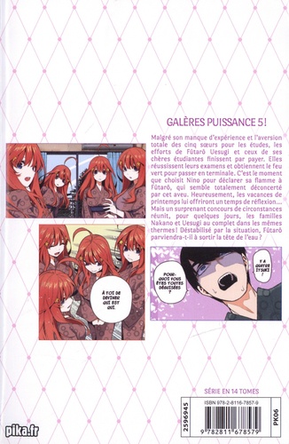 Malgré son manque d'expérience et l'aversion totale des cinq soeurs pour les études, les efforts de Fûtarô Uesugi et ceux de ses chères étudiantes finissent par payer. Elles réussissent leurs examens et obtiennent le feu vert pour passer en terminale. C'est le moment que choisit Nino pour déclarer sa flamme à Fûtarô, qui semble totalement déconcerté par cet aveu. Heureusement, les vacances de printemps lui offriront un temps de réflexion... Mais un surprenant concours de circonstances réunit, pour quelques jours, les familles Nakano et Uesugi au complet dans les mêmes thermes ! Déstabilisé par la situation, Fûtarô parviendra-t-il à sortir la tête de l'eau ?