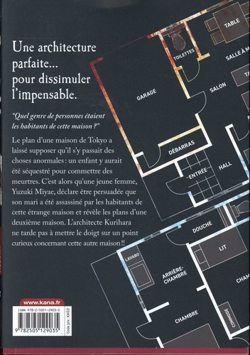Une architecture parfaite... pour dissimuler l'impensable. "Quel genre de personnes étaient les habitants de cette maison ? " Le plan d'une maison de Tokyo a laissé supposer qu'il s'y passait des choses anormales : un enfant y aurait été séquestré pour commettre des meurtres. C'est alors qu'une jeune femme, Yuzuki Miyae, déclare être persuadée que son mari a été assassiné par les habitants de cette étrange maison et révèle les plans d'une deuxième maison. L'architecte Kurihara ne tarde pas à mettre le doigt sur un point curieux concernant cette autre maison !!