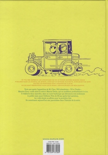Ce volume reprend les aventures de Tif et Tondu signées Marcel Denis publiées dans le Journal de Spirou, ainsi qu'un épisode inachevé, scénarisé par Rosy. Toutes ces histoires sont inédites en album. Elles sont présentées dans leur ordre chronologique de réalisation. Trois ans après l'apparition de M. Choc, Will abandonne "Tif et Tondu". Maurice Rosy confie alors la série à Marcel Denis, qui en modifiera profondément le ton. Il réalisera deux épisodes, dans un style burlesque qui déroutera non seulement le public mais aussi l'éditeur. Près de 60 ans après leur parution, les voila réunis en album pour la première fois. Ils constituent aujourd'hui une parenthèse dans l'histoire de la série.