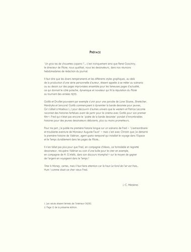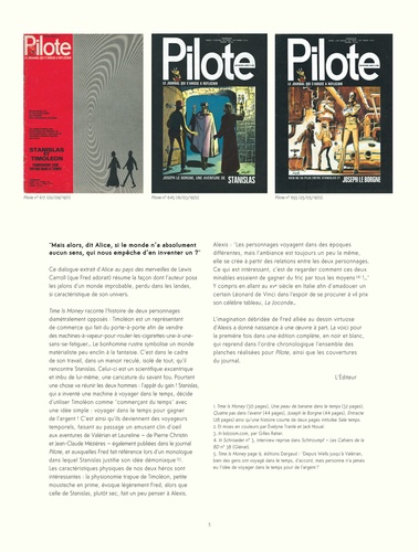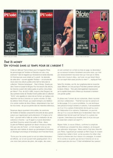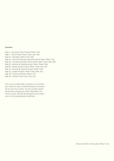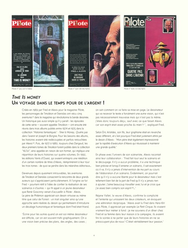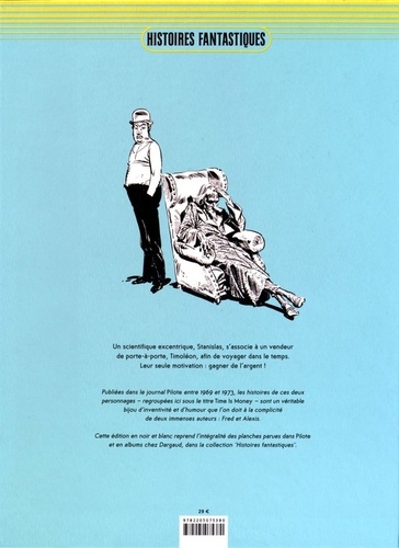 Time is money ou les aventures temporelles incroyables de deux voyageurs atypiques. Créée en 1969 dans Pilote par deux génies de la bande dessinée, cette série comprenait trois albums publiés chez Dargaud dans les années 1970 (Time is Money ; Quatre pas dans l'avenir ; Joseph le borgne). Time is money met en scène un scientifique et un vendeur en porte-à-porte qui voyagent dans le temps pour... de l'argent. Après avoir été partiellement reprise par les éditions Vents d'ouest dans les années 1990, la série bénéficie enfin d'une édition intégrale, digne de l'immense talent de ses créateurs !