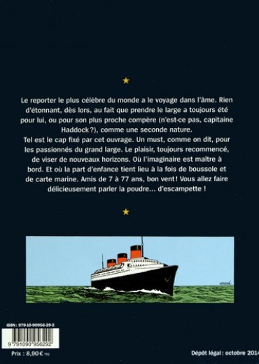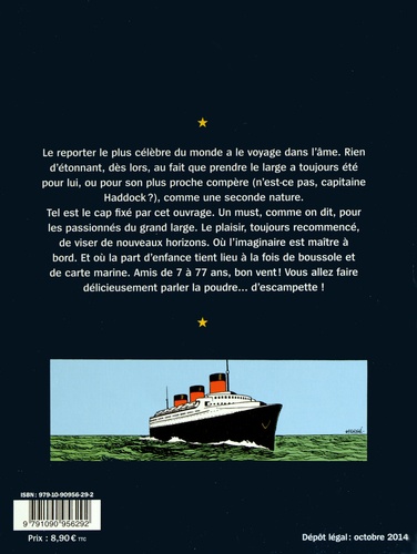 Le reporter le plus célèbre du monde a le voyage dans l'âme. Rien d'étonnant, dès lors, au fait que prendre le large a toujours été pour lui, ou pour son plus proche compère (n'est-ce pas, capitaine Haddock ?), comme une seconde nature. Tel est le cap fixé par cet ouvrage. Un must, comme on dit, pour les passionnés du grand large. Le plaisir, toujours recommencé, de viser de nouveaux horizons. Où l'imaginaire est maître à bord. Et où la part d'enfance tient lieu à la fois de boussole et de carte marine. Amis de 7 à 77 ans, bon vent ! Vous allez faire délicieusement parler la poudre... d'escampette !