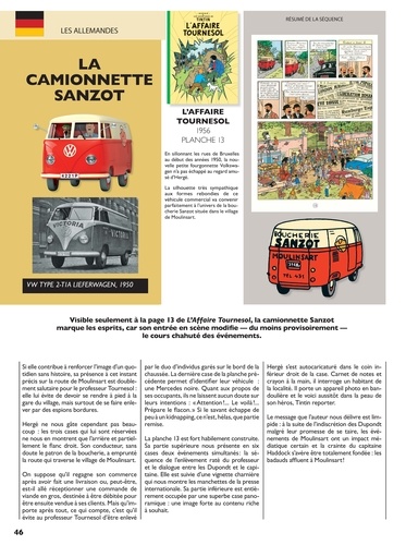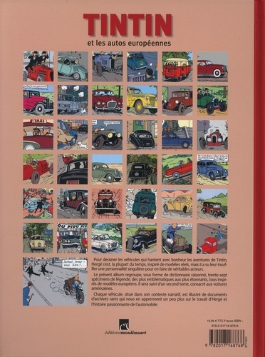 Elles viennent de France, d'Italie, d'Angleterre, d'Allemagne ou des Etats-Unis... Berlines, limousines, décapotables, coupés, conduites intérieures, leurs lignes racontent une époque, un esprit, un art de vivre. Les voitures dessinées par Hergé nous en apprennent toutes un peu plus sur son travail et sur l'histoire passionnante de l'automobile. Disponibles à profusion pour ses héros de papier - on en dénombre au total plus de soixante-dix-, elles sont indissociables de l'action et participent pleinement au ressort comique ou dramatique du récit. Chaque double page présente le modèle dans son contexte narratif, accompagné d'un document rare des archives d'Hergé, ainsi que du modèle réduit 1/24 de la collection Les voitures de Tintin coéditée par Moulinsart et Hachette Collections.