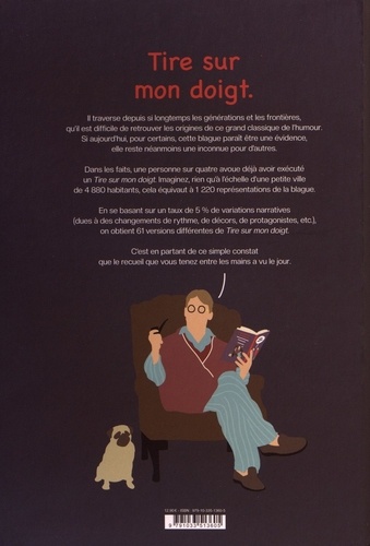 Il traverse depuis si longtemps les générations et les frontières, qu'il est difficile de retrouver les origines de ce grand classique de l'humour. Si aujourd'hui, pour certains, cette blague paraît être une évidence, elle reste néanmoins une inconnue pour d'autres. Dans les faits, une personne sur quatre avoue déjà avoir exécuté un Tire sur mon doigt. Imaginez, rien qu'a l'échelle d'une petite ville de 4 880 habitants, cela équivaut à 1 220 représentations de la blague. En se basant sur un taux de 5 % de variations narratives (dues à des changements de rythme, de décors, de protagonistes, etc.), on obtient 61 versions différentes de Tire sur mon doigt. C'est en partant de ce simple constat que le recueil que vous tenez entre les mains a vu le jour.