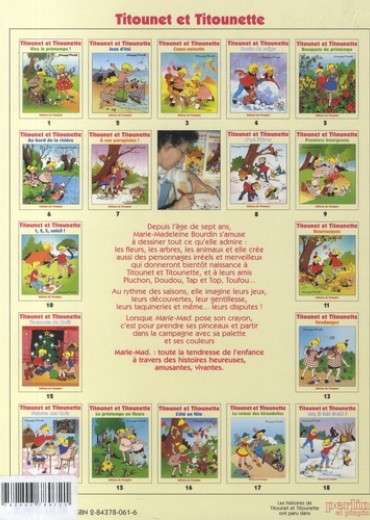 Titounet et Titounette, les héros du journal Perlin Pinpin sont réédités dans une présentation soignée aux couleurs chattoyantes. Au rythme des saisons, le petit lecteur suit les jeux, les découvertes, les taquineries aussi des deux héros et de leurs amis de la nature. Toute la tendresse de l'enfance à travers des histoires heureuses, drôles et vivantes.