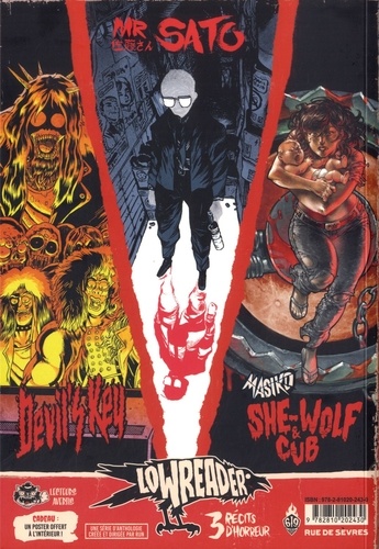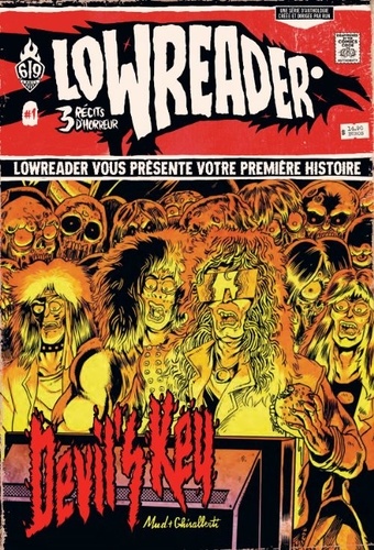 LowReader est la nouvelle création du Label 619, une série d'anthologie d'histoires courtes de suspense, d'horreur et d'exploitation, dirigée par Run. Chaque numéro proposera trois histoires complètes. Au fil des pages, Lazare le corbeau jette un regard cynique sur les histoires présentées, et fait office de fil rouge tout au long du recueil. Les récits de LowReader sont entrecoupés d'articles, de billets d'humeur, de fausses pubs... autant d'entractes destinés à donner des clés de compréhension au lecteur, de le distraire, de l'amener sur de fausses pistes, ou de faire retomber la pression avant un nouveau shot d'adrénaline. Une nouvelle littéraire illustrée sera aussi de la partie dans chaque opus... Suivez le corbeau ! Dans ce premier numéro de LowReader : Un groupe de Glam'Rock condamné par les démons du Rock authentique pour avoir vendu leur image à une chaîne de Fast Food (Devil's Key, par Mud et Nicolas Ghisalberti) ; Un salary man japonais imprime une arme à feu en 3D pour régler ses problèmes d'ego... (Mr Sato, par Run et Guillaume Singelin) ; Et le retour tant attendu de Masiko, personnage iconique de l'univers Freaks' Squeele, mère de Xiong Mao, qui revient combattre les loups-garous bikers du premier DoggyBags sur leur propre territ'oire, une nuit de pleine lune (She-Wolf & Cub, par Florent Maudoux).