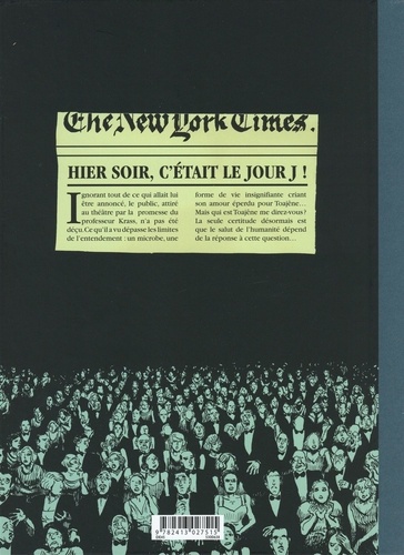 Drames et passions constituent aussi le quotidien de l'univers microscopique et même s'ils ne mesurent qu'un micromètre, les héros n'y sont pas moins remarquables... Par l'odyssée improbable d'un microbe, panacée à l'épidémie qui frappe le monde que seul son amour pour une star du cinéma stimule, les auteurs nous révèlent une dimension fascinante où le burlesque touche à la fantaisie poétique.