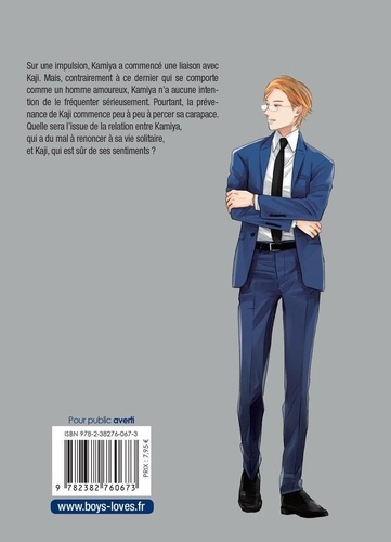 Sur une impulsion, Kamiya a commencé une liaison avec Kaji. Mais, contrairement à ce dernier, qui se comporte comme un homme amoureux, Kamiya n'a aucune intention de le fréquenter sérieusement. Pourtant, la prévenance de Kaji commence peu à peu à percer sa carapace. Quelle sera l'issue de la relation entre Kamiya, qui a du mal à renoncer à sa vie solitaire, et Kaji, qui est sûr de ses sentiments ?