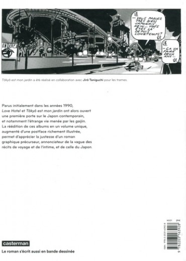 En 1993 et 1997, Love Hotel et Tôkyô est mon jardin ouvraient la première porte sur l'étrange vie menée au Japon par les gaijin, et plus précisément David Martin, confronté tant à la perte de repères qu'aux découvertes culturelles, tout en bénéficiant de la fascination exercée par les Européens sur les jeunes femmes... La réédition en un volume unique de ces albums permettra aux amoureux du Japon de redécouvrir la période, et aux autres, amateurs de graphisme impeccable, de scénario imprévisible et d'érotisme subtil, d'apprécier l'ampleur d'une oeuvre précurseure, annonciatrice de la vague des récits de l'intime et de celle du Japon.
