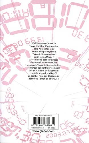 L'affrontement entre le Tokyo Manjikai 2e génération et le Kanto Manjikai atteint son paroxysme Takemichi se retrouve enfin face à Mikey Alors qu'une partie du passé de celui-ci est révélée les visions de Takemichi semblent se renforcer pendant leur combat Les sentiments de Takemichi vont-ils atteindre Mikey Le combat final qui décidera du destin du Toman se poursuit