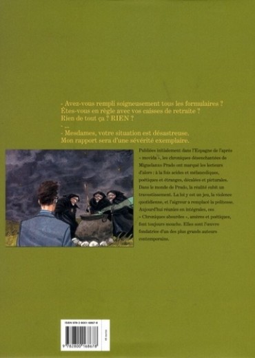 Publiées initialement dans l'Espagne des années 1980, les chroniques acides de Miguelanxo Prado ont vu l'émergence d'un auteur majeur. Par leur approche graphique, toujours mordante, mais surtout par leur ton si nouveau, acéré et mélancolique, peignant sans concession le désenchantement qui succède à la Movida. Aujourd'hui réunies en intégrales, ces Chroniques absurdes sont plus que jamais d'actualité et trouvent sans conteste leur place au sein de la prestigieuse collection "Aire Libre".