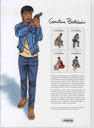 Depuis sa première apparition en 1996 dans les pages du magazine (A suivre), Caroline Baldwin a parcouru un sacré bout de chemin. Avec déjà 16 albums traduits dans plusieurs langues dont l'allemand, l'italien, l'espagnol ou le portugais, les aventures trépidantes de la belle enquêtrice imaginée par André Taymans sont aujourd'hui devenues un classique du genre. Ce quatrième volume marque les retrouvailles de Caroline avec Roxane Leduc au Népal, là même où elles s'étaient rencontrées. Mais ces retrouvailles ne seront pas de tout repos. Tout comme la plongée au sein des milieux complotistes américains que Caroline devra affronter avec l'aide de l'agent du FBI Gary Scott et de l'inspecteur Philips de la police de New York, deux vieilles connaissances.