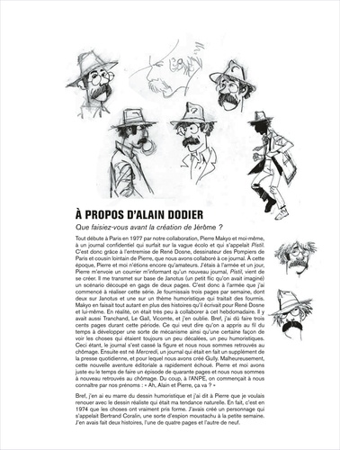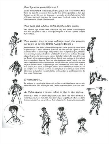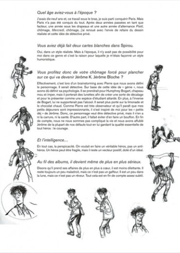Il aimerait ressembler à Bogart... il a la dégaine de Monsieur Hulot. Gourmand et rêveur, distrait et tendre, craintif mais courageux, Jérôme Bloche est surtout, mine de rien, très futé. Sur les traces de ses illustres prédécesseurs américains, mais à sa manière tendre et lunaire, notre détective privé plonge dans les mystères les plus noirs, les drames les plus violents, sans avoir l'air d'y toucher...