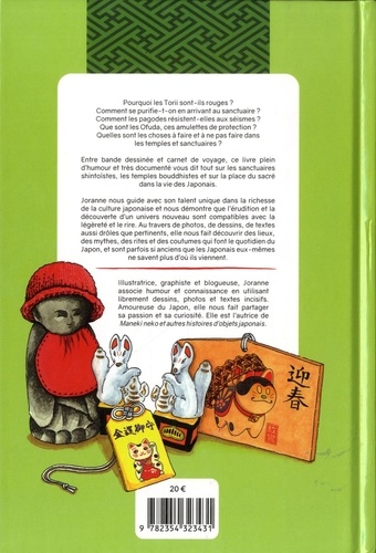 Pourquoi les Torii sont-ils rouges ? Comment se purifie-t-on en arrivant au sanctuaire ? Comment les pagodes résistent-elles aux séismes ? Que sont les Ofuda, ces amulettes de protection ? Quelles sont les choses à faire et à ne pas faire dans les temples et sanctuaires ? Entre bande dessinée et carnet de voyage, ce livre plein d'humour et très documenté vous dit tout sur les sanctuaires shintoïstes, les temples bouddhistes et sur la place du sacré dans la vie des Japonais.