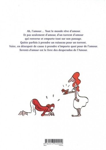 Petit, grand, gros, moche, maigre, femme, homme, riche, pauvre, intelligent ou très bête, tout le monde rêve d'amour. Et même d'un torrent d'amour qui renverse et emporte tout sur son passage. Quitte parfois à prendre un ruisseau pour un torrent. Voire, en désespoir de cause, à prendre n'importe quoi pour de l'amour. Torrents d'amour est le livre des desperados de l'Amour, qui fait enfin rimer amour et humour.