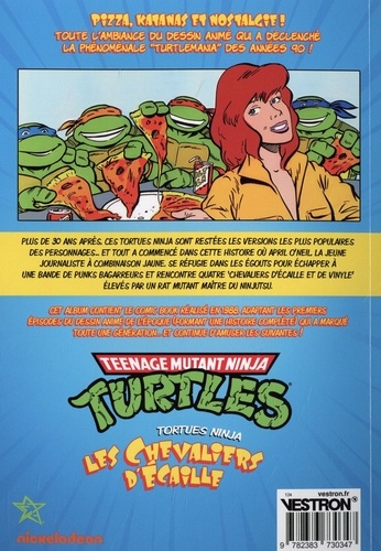 Toute l'ambiance du dessin animé qui a déclenché la phénoménale Tutlemania des années 90 ! Plus de 30 ans après, ces Tortues Ninja sont restées les versions les plus populaires des personnages, et tout a commencé dans cette histoire où April O'Neil, la jeune journaliste à combinaison jaune, se réfugie dans les égouts pour échapper à une bande de punks bagarreurs et rencontre quatre ? chevaliers d'écailles et de vinyle' élevés par un rat mutant maître du ninjutsu... Cet album contient le comic book de l'époque, réalisé en 1988 et adaptant les premiers épisodes du cartoon (formant une histoire complète) qui a marqué toute une génération... et continue d'amuser les suivantes !
