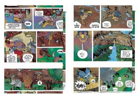 Un matin comme les autres, quelque part au fond de l’Australie. Toto l’ornithorynque s’apprête à prendre son petit déjeuner lorsque…Horreur ! Il s’aperçoit que la rivière est à sec. Or la rivière, c’est toute la vie de Toto : sa maison est bâtie au beau milieu du courant, il s’y baigne, y pêche les vers dont il raffole…Que va-t-il devenir ? Que s’est-il passé ? Accompagné de Wawa le koala, il décide de remonter la rivière pour tenter d’élucider ce mystère. Mais plus les deux amis s’enfoncent dans la forêt, plus le silence se fait angoissant. Les animaux semblent terrifiés et, partout où ils passent, Toto et Wawa croisent les traces d’une redoutable bête « avec de grandes dents et des yeux brillants ». Serait-elle aussi responsable de l’assèchement de la rivière ? « J’ai quelque chose qui peut vous aider » leur murmure alors le vieux wombat qui vit au pied de l’arbre magique.
