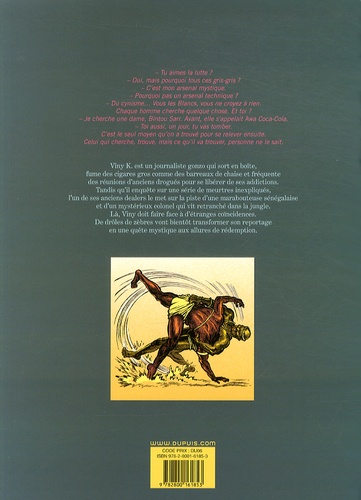 Viny K est un journaliste gonzo qui sort en boîte, fume des cigares gros comme des barreaux de chaise et fréquente des réunions d'anciens drogués pour se libérer de ses addictions. Tandis qu'il enquête sur une série de meurtres inexpliqués, l'un de ses anciens dealers le met sur la piste d'une marabouteuse sénégalaise et d'un mystérieux colonel qui vit retranché dans la jungle. Là, Viny doit faire face à d'étranges coïncidences. De drôles de zèbres vont bientôt transformer son reportage en une quête mystique aux allures de rédemption.