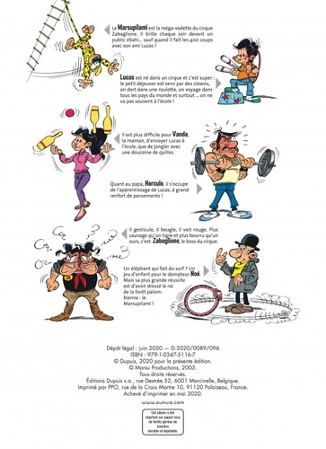 Un tour de magie à inventer, le chapiteau à réparer, des bonbons à distribuer au public : en piste Marsupilami ! Mais c'est sans compter sur un Marsupilami chatouilleur, gourmand et très maladroit. Le cirque Zabaglione va devoir jongler avec la famille du roi de la forêt palombienne...