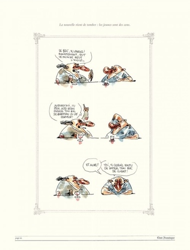 D'aucuns pourraient penser que les affreux, sales et méchants poivrots de Chez Francisque ne sont que des ratés dont on aime bien se moquer. Mais les plus observateurs pourront aussi se dire que l'on est tous, parfois, des clients avinés de ce rade cradingue. Lindingre et Larcenet nous offrent ici un nouvel opus de l'une des plus hilarantes séries contemporaines.