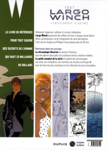 Séduisant, bagarreur, solitaire et surtout milliardaire, Largo Winch passionne des milliers de fans à chaque nouvel album. Héros contemporain, né de l'imagination de Jean Van Hamme, il est mis en images par Philippe Francq depuis plus de 25 ans. Retrouvez dans cet ouvrage : La chronologie illustrée du western financier, tous les albums décryptés, les coulisses de leur création révélées. Le guide complet de la série : la galerie des personnages, ses amis, ses conquêtes, ses ennemis, les arcanes du Groupe W, tous les lieux les plus mythiques et les véhicules les plus incroyables.