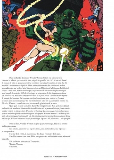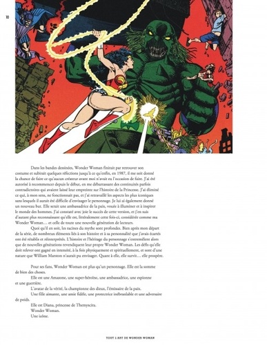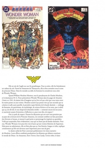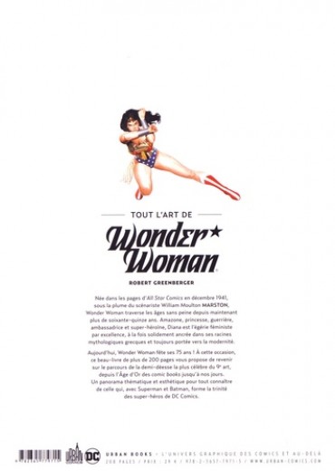 Née dans les pages d'All Star Comics en décembre 1941, sous la plume du scénariste William Moulton Marston, Wonder Woman traverse les âges sans peine depuis maintenant plus de soixante-quinze ans. Amazone, princesse, guerrière, ambassadrice et super-héroïne, Diana est l'égérie féministe par excellence, à la fois solidement ancrée dans ses racines mythologiques grecques et toujours portée vers la modernité. Aujourd'hui, Wonder Woman fête ses 75 ans ! A cette occasion, ce beau-livre de plus de 200 pages vous propose de revenir sur le parcours de la demi-déesse la plus célèbre du 9e art, depuis l'Age d'Or des comic books jusqu'à nos jours. Un panorama thématique et esthétique pour tout connaître de celle qui, avec Superman et Batman, forme la trinité des super-héros de DC Comics.