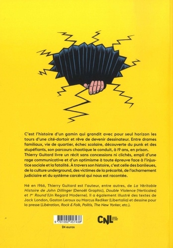 Cest lhistoire dun gamin qui grandit avec pour seul horizon les tours dune cite'-dortoir et re^ve de devenir dessinateur. Entre drames familiaux, vie de quartier, e'chec scolaire, de'couverte du punk, de lamour et des drogues, son parcours chaotique le conduit, a` 19 ans, en prison. Loin de sapitoyer sur son sort, Thierry Guitard livre un re'cit sans concessions ni cliche's, empli dune rage communicative et dun optimisme a` toute e'preuve face a` linjustice sociale et la fatalite'. A` travers son histoire, cest celle des banlieues, de la naissance du rock underground, des victimes de la pre'carite', de lacharnement judiciaire et du syste`me carce'ral qui nous est raconte'e.