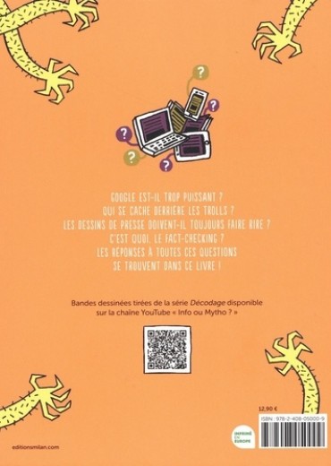 Google est-il trop puissant ? Qui se cache derrière les trolls ? Les dessins de presse doivent-il toujours faire rire ? C'est quoi, le fact-checking ? La réponse à toutes ces questions se trouve dans cette intégrale ! Des deepfakes aux lobbys, des publicités cachées aux coulisses d'une rédaction, des clashs à la télévision à la course au scoop, "Tout pour éviter les trolls" démêle le vrai du faux des médias. Après une première publication dans le magazine "Géo Ado", voici les épisodes de la série "Décodage" rassemblés dans une bande dessinée désopilante et instructive ! " Le dialogue avec le lecteur est moderne et apporte le décryptage nécessaire pour ne pas être piégé. J'ai personnellement appris bien des choses, un nouveau vocabulaire pour la vieille génération que je représente. (...) Un ouvrage donc à utiliser aussi bien pour les adultes que pour les jeunes de plus de 10 ans. Je plébiscite ! " L. B. - Lu et Partagé " Un ouvrage salutaire pour apprendre aux adolescents à se poser les bonnes questions, à aiguiser leur esprit critique dans un monde où l'éducation aux médias et à l'information est plus que vitale. " Chronique de Noëmie Kormann Librairie Le Failler (Rennes)