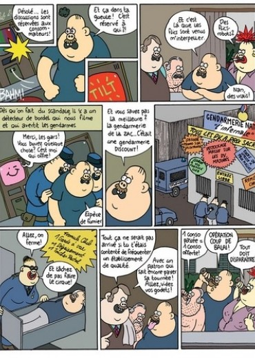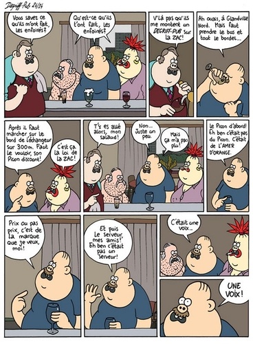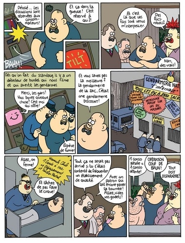 Il y a femme et femme. Mais celle-ci, à n'en pas douter, est une vraie femme ! Un intru s'est glissé dans la collection « girly » de Fluide Glacial. Après Margaux Motin rencontre la femme parfaite est une connasse ! et Emilie voit quelqu'un, voici Lindingre qui tente sa chance auprès du lectorat féminin. On reconnaît bien sûr sur cette couv sa fameuse héroïne Titine dans ses oeuvres. Une main pour trinquer, une main pour cogner. Dans cet ouvrage, les femmes sont toujours victorieuses, mais à quel prix ? Sans être une thèse de doctorat en sociologie, ce recueil d'aventures trace à travers bistrot, planning familial, chambre à coucher, Pôle Emploi... un portrait de la France qui se lève tard, oui peut-être, mais qui aimerait qu'on lui foute la paix au lieu de la stigmatiser. Le plein emploi oui, mais le plein de Picon d'abord !