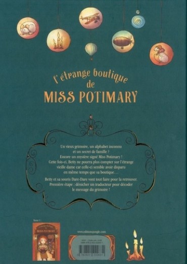 Un vieux grimoire, un alphabet inconnu et un secret de famille ? Encore un mystère signé Miss Potimary ! Cette fois-ci, Betty ne pourra plus compter sur l'étrange vieille dame car celle-ci semble avoir disparu en même temps que sa boutique... Betty et sa souris Dare-Dare vont tout faire pour la retrouver. Première étape : dénicher un traducteur pour décoder le message du grimoire !