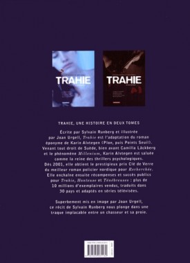 Vengeance et assassinat, qui s'en sortira ? Suite et fin de Trahie ! Sylvain Runberg et Joan Urgell ont réussi leur pari de mettre en images l'un des meilleurs thrillers psychologiques de la reine du genre en Suède, Karin Alvtegen. La tension entre les personnages est à son paroxysme ! Eva, la femme trompée, recourt aux pires stratagèmes pour se venger, tandis que Jonas, l'inquiétant psychopathe, met en oeuvre sa diabolique stratégie… Sur fond de couleurs glaciales et glaçantes, nul n'en sortira indemne et le lecteur non plus !