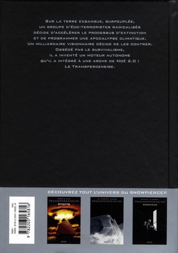 Sur la terre exsangue, surpeuplée, un groupe d'écolo-terroristes radicalisés décide d'accélérer le processus d'extinction et de déclencher une apocalypse climatique. Un milliardaire visionnaire chinois (inspiré de la figure d'Elon Musk) décide de les contrer. Obsédé par le survivalisme, depuis des années, il s'est préparé au pire scénario catastrophe : il a inventé un moteur autonome qu'il a intégré à une arche de Noé 2. 0, Le Transperceneige. Quand la folie des Apocalypsters triomphe, le train est prêt. Au coeur de l'hiver atomique, le compte à rebours de l'ère glaciaire débute et la mission de sauvetage ultime est lancée.