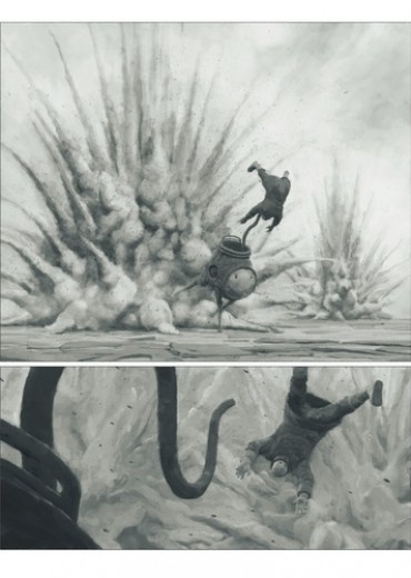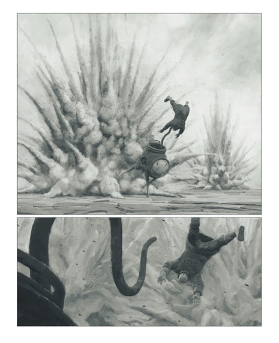 C'est un univers de désolation, grisâtre et silencieux. Un univers aux allures de fin du monde, peuplé de créatures étranges. Au coeur de ce décor apocalyptique, un cavalier, juché sur sa drôle de monture, est projeté à terre par une explosion. Il se nomme Rumpert. Dans un container de métal, il découvre la tête d'un enfant, BombKid. Désormais, ils feront route ensemble. Bientôt, un conflit éclate entre des enfants sauvages révoltés et une armée de robots... Cette histoire muette tient à la fois de Stalker, le film d'Andreï Tarkovski, du Arzach de Moebius et du Vuzz de Philippe Druillet. Sans oublier l'imaginaire de Marc Caro, le réalisateur de La Cité des enfants perdus, qui signe le scénario de ce deuxième tome. Inspiré par l'architecture et les créatures fascinantes de La Planète oubliée de Paolo Serpieri, le graphisme de Pim Bos fait naître une émotion esthétique chez le lecteur, pimentée par une pincée d'humour noir. En breton, " tremen " signifie " passage ". Cet onirique roman-graphique est bien un passage qui nous entraîne de l'autre côté de la réalité, vers le domaine du rêve. Ou du cauchemar, c'est selon...