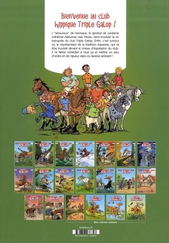 La seule et unique BD très à cheval sur l'humour. L'" amoureux " de Monique, le général de cavalerie Adhémar-Alphonse Mac Hesse, vient troubler la vie tranquille du club Triple Galop. Enfin, c'est surtout lui, le représentant de la tradition équestre, qui va être troublé devant le niveau d'équitation du club. Il va falloir remédier à tout ça et mettre un peu d'ordre et de rigueur dans ce laxisme ambiant !