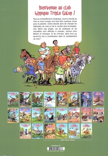 Bienvenue au club hippique Triple Galop l Face au réchauffement climatique, tout le monde au club se rend compte qu'il faut faire quelque chose pour la planète. Céline décide alors de changer les habitudes du club et de le rendre plus écologiste. Une tâche pas simple, car les pratiques et les mentalités sont difficiles à changer, surtout chez Bébert et Monique. Et les chevaux, dans tout ça, seront-ils mis à contribution dans le verdissement du club ?