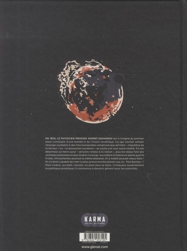 Ou comment Andreï Sakharov est devenu un militant anti-bombe nucléaire ! Andreï Sakharov grandit dans une famille de scientifiques qui échappe aux purges staliniennes. Fasciné très tôt par le rapport à l'infini, son génie est vite repéré par le Kremlin. Dès la fin de la Seconde Guerre mondiale, ce cerveau brillant travaille au développement d'armes nucléaires pour la Russie communiste. Sa vie bascule quand, horrifié, il découvre la puissance de la bombe qui frappe Hiroshima en août 1945. Après cette démonstration, Staline n'a qu'un objectif : doter l'URSS de la bombe nucléaire ! Et sa volonté ne tolère aucune opposition. Andreï est envoyé dans une base scientifique secrète, avec pour unique mission de faire avancer la recherche avec ses collègues physiciens. Mais l'homme de science cauchemarde, trop conscient de l'objet monstrueux de ses travaux. Durant cette longue période de recherche, il est également témoin d'emprisonnements arbitraires et de sévices envers les dissidents. En 1953, le physicien prodige est à l'origine du premier essai concluant d'une bombe H. Lui qui voulait utiliser l'énergie nucléaire à des fins humanistes comprend que derrière " l'équilibre de la terreur " ou " la dissuasion nucléaire " se cache une tout autre réalité. S'il est désormais un héros pour " services rendus à la nation ", plus les essais font des victimes innocentes et plus Andreï s'insurge. Succédant à Staline en pleine guerre froide, Khrouchtchev poursuit la même obsession. Et si Andreï pouvait mieux faire ? Et s'il était capable de créer la plus grosse bombe jamais vue, la " Tsar Bomba " ? Mais Andreï, accablé, révolté, ne peut plus se taire. Critiquant ouvertement la politique soviétique, il commence à devenir gênant pour les autorités... Fabien Grolleau et Cyril Elophe nous offrent un roman graphique saisissant à travers le parcours d'Andreï Sakharov ! Le duo retrace le destin d'une des personnalités les plus marquantes du XXe siècle, père de la bombe à hydrogène soviétique, mais aussi fervent défenseur des droits de l'homme et prix Nobel de la paix en 1975. Un album documenté, dense et terriblement humaniste qui apporte une réflexion écologique et nous invite à composer avec l'infiniment petit pour mieux comprendre les lois de l'univers... Entre Histoire, poésie cosmique et biopic, une oeuvre riche à lire avant la fin du monde.