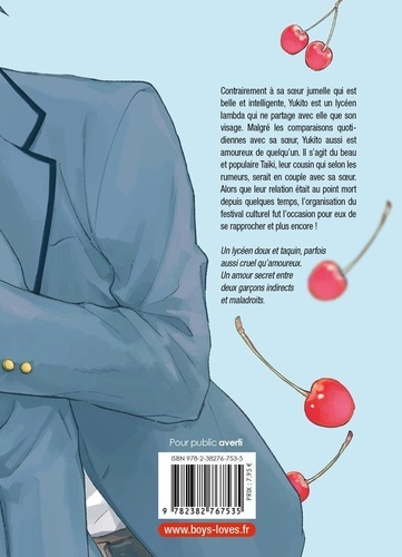 Contrairement à sa soeur jumelle qui est belle et intelligente, Yukito est un lycéen lambda qui ne partage avec elle que son visage. Malgré les comparaisons quotidiennes avec sa soeur, Yukito aussi est amoureux de quelqu'un. Il s'agit du beau et populaire Taiki, leur cousin qui selon les rumeurs, serait en couple avec sa soeur. Alors que leur relation était au point mort depuis quelques temps, l'organisation du festival culturel fut l'occasion pour eux de se rapprocher et plus encore ! Un lycéen doux et taquin, parfois aussi cruel qu'amoureux. Un amour secret entre deux garçons indirects et maladroits.