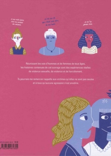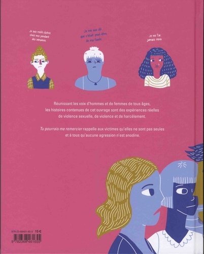 Réunissant les voix d'hommes et de femmes de tous âges, les histoires contenues de cet ouvrage sont des expériences réelles de violence sexuelle, de violence et de harcèlement. Tu pourrais me remercier rappelle aux victimes qu'elles ne sont pas seules et à tous qu'aucune agression n'est anodine.