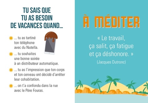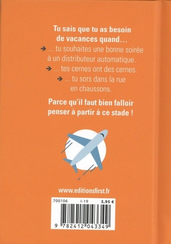Tu sais que tu as besoin de vacances quand... ... tu souhaites une bonne soirée à un distributeur automatique. ... tes cernes ont des cernes. ... tu sors dans la rue en chaussons. Parce qu'il faut bien falloir penser à partir à ce stade !