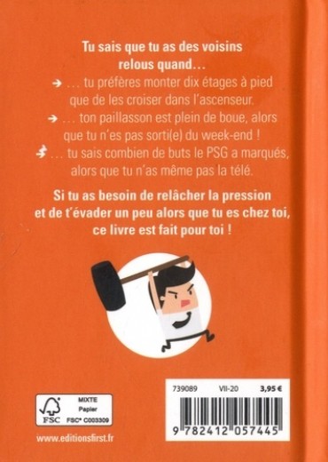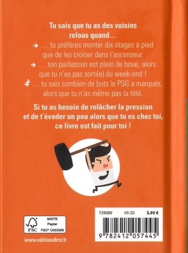 Tu sais que tu as des voisins relous quand... - ...tu préfères monter dix étages à pied que de les croiser dans l'ascenseur. - ...ton paillasson est plein de boue, alors que tu n'es pas sorti(e) du week-end ! - ...tu sais combien de buts le PSG a marqués, alors que tu n'as même pas la télé. Si tu as besoin de relâcher la pression et de t'évader un peu alors que tu es chez toi, ce livre est fait pour toi !