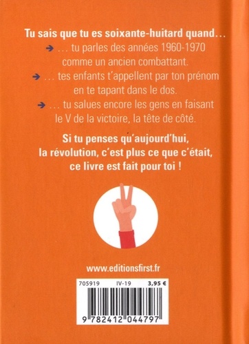Parce qu'être soixante-huitard, c'est tout un état d'esprit ! Tu sais que tu es un soixante-huitard quand... ... tu gardes tes cheveux longs, quelle que soit la mode. Et ébouriffés, c'est mieux... . tes enfants t'appellent par ton prénom... . tu pars en vacances dans les Cévennes, c'est ton pèlerinage à toi... . tu parles des années 60-70 comme un ancien combattant. D'ailleurs, tu peux montrer ton drapeau rouge et noir pour l'attester.