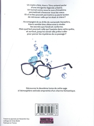 Un matin d'été, Kaoru Tôno entend parler d'une intrigante légende urbaine. Un tunnel connu sous le nom d'Urashima permettrait d'exaucer tous les voeux. Et si ce lieu pouvait permettre au jeune lycéen de retrouver celle qui lui était si chère ? Accompagné de sa drôle de camarade Hanashiro, Kaoru semble bien déterminé à révéler les secrets qu'il renferme. Mais quel but poursuit celle qui l'assiste dans cette quête, et surtout, jusqu'où serait-elle prête à aller pour percer les mystères de ce passage ? Découvrez le deuxième tome de cette saga à l'atmosphère estivale emplie de charme et de fantastique, dans cette adaptation du light novel de Mei Hachimoku, détenteur du prix spécial du jury et du grand prix Gagaga au Japon !