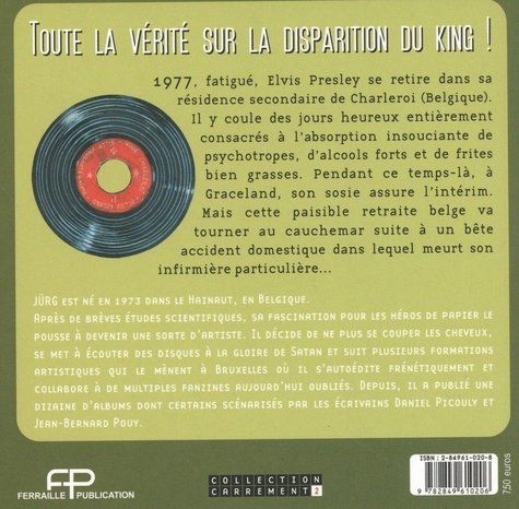Toute la vérité sur la disparition du king ! 1977, fatigué, Elvis Presley se retire dans sa résidence secondaire de Charleroi (Belgique). Il y coule des jours heureux entièrement consacrés à l'absorption insouciante de psychotropes, d'alcools forts et de frites bien grasses. Pendant ce temps-là, à Graceland, son sosie assure l'intérim. Mais cette paisible retraite belge va tourner au cauchemar suite à un bête accident domestique dans lequel meurt son infirmière particulière...