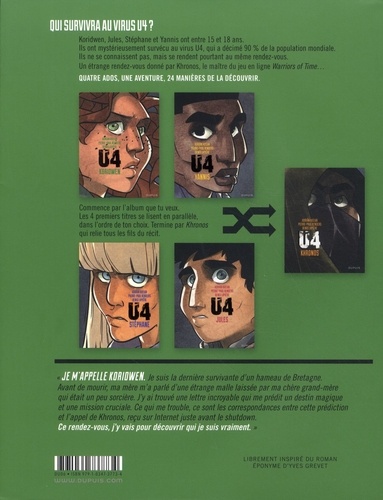 "Je m'appelle KORIDWEN. Je suis la dernière survivante d'un hameau de Bretagne. Avant de mourir, ma mère m'a parlé d'une étrange malle laissée par ma chère grand-mère qui était un peu sorcière. J'y ai trouvé une lettre incroyable qui me prédit un destin magique et une mission cruciale. Ce qui me trouble, ce sont les correspondances entre cette prédiction et l'appel de Khronos, reçu sur Internet juste avant le shutdown. Ce rendez-vous, j'y vais pour découvrir qui je suis vraiment."