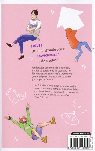 La mère d'Ito se remarie ! Pendant les vacances de printemps, Ito va découvrir sa nouvelle famille ainsi que son nouveau lieu de vie... Mais ce que sa mère ne lui a pas précisé, c'est qu'elle va avoir quatre frères ! Ito va se démener pour se faire accepter au sein de cette fratrie ! Le plus compliqué sera sans doute de se faire accepter par Gen, l'aîné des frères, un beau gosse froid qui, en réalité, s'occupe beaucoup de ses frères et ne voit pas d'un très bon oeil l'arrivée de cette soeur qui fourre son nez partout. Les situations cocasses vont s'enchaîner et les parents ne seront pas là pour aider...