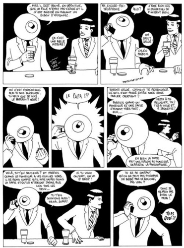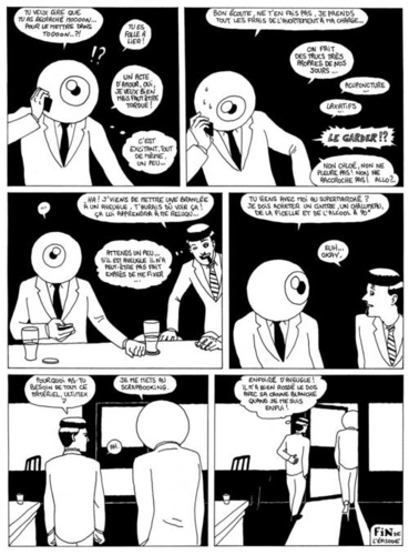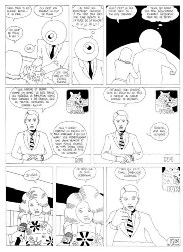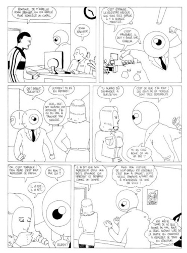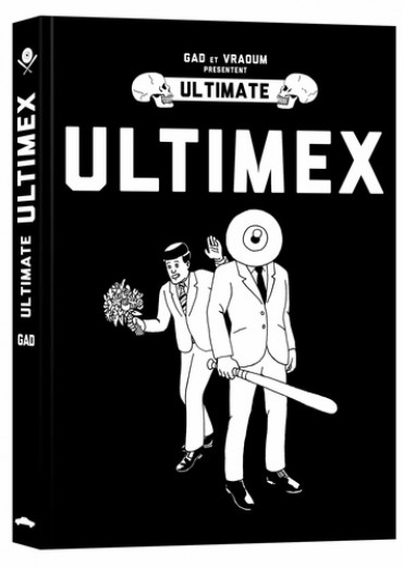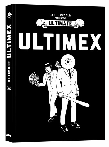 Qui ne connaît pas Ultimex ? Cet American Psycho à la française a la particularité d'avoir un énorme oeil à la place de la tête, et d'être toujours tiré à quatre épingle. Musclé, dans un costume mettant en valeur sa silhouette, qu'il lui arrive d'arracher violemment quand il doit rosser un importun ou violer une veuve devant un orphelin. Car Ultimex ne fait pas dans la dentelle. Ses ex mangent les pissenlits par la racine, enterré dans un trou sous une croix avec un nom de chien (Sparky le plus souvent) ou coulé dans une colonne de béton. Ses adversaires portent des dentiers et ont du avoir recours à la chirurgie réparatrice, à l'exception de son collègue détesté, Aaron, qu'il finira bien par coincer un jour. Ultimex n'est pas seul, car il a un ami. Enfin... Un faire-valoir. Steve, le faire-falloir prodige, qui est lui aussi un beau-gosse bien habillé, mais un peu moins bien, un peu moins drôle, un peu moins tout. Il est uniquement là pour mettre en valeur Ultimex. Et il a des petits penchants peu avouables, du côté de la pédophilie, peut être, et une homosexualité refoulée qui lui fait tenir des propos insoutenablement homophobe tandis qu'il regarde les corps huileux de catcheurs myopathes. Trois albums d'Ultimex sont parus et ont fait de lui l'une des icônes de la blogosphère bd. Le jeu Coups d'un soir a été réalisé dans le cadre d'une exposition à sa gloire en Suisse. Voilà la version ultime de ses aventures reliées. Ultimex est une icône rock, trash et provoc qui lui a valu de nombreux fan, y compris au sein des auteurs de bd actuels. On trouve donc quelques couverture des "comix utilmex" signé par des grands noms de la bd actuelle : Monsieur le chien, Goupil Acnéique, Florence Dupré Latour, Guillaume Bouzard, Ibn al Rabin, Bgnet, que les meilleurs. Tous seront présent dans ce recueil relié en cuir cochon doré à l'or fin ; on murmure qu'il serait en fait relié en peau humaine, mais c'est sans doute une légende urbaine... Un recueil d'humour noir, avec une adjonction de couleur pour rire jaune.