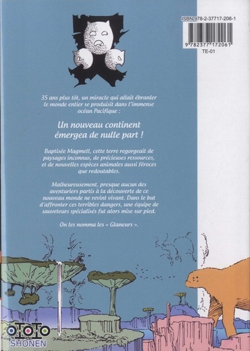 35 ans plus tôt, un miracle qui allait ébranler le monde entier se produisit dans l’immense océan Pacifique : Un nouveau continent émergea de nulle part ! Baptisée Magmell, cette terre regorgeait de paysages inconnus, de précieuses ressources, et de nouvelles espèces animales aussi féroces que redoutables. Malheureusement, presque aucun des aventuriers partis à la découverte de ce nouveau monde ne revint vivant. Dans le but d’affronter ces terribles dangers, une équipe de sauveteurs spécialisés fut alors constituée. On les nomma les « Glaneurs «. Plus qu’un hommage Née de l’imagination du dessinateur chinois Di Nianmiao, Ultramarine Magmell est une série profondément inspirée par les mangas d’aventure cultes du magazine Shônen Jump, tels que One Piece et Hunter x Hunter. D’abord publié en Chine, le manga s’est hissé au niveau de ses modèles en rejoignant l’écurie Jump, et en recevant les louanges de Yoshihiro Togashi (Yuyu Hakusho, Hunter x Hunter) !