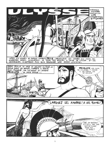 L'Odyssée d'Homère, vue par Jacques Lob et Georges Pichard Il s'agit probablement de l'histoire la plus connue du monde : l'odyssée du rusé et intrépide Ulysse, roi d'Ithaque, et son retour à sa terre natale pour retrouver Pénélope, sa femme bien aimée. Une aventure fabuleuse qui fait encore l'objet de nombreuses adaptations, dont celle que Jacques Lob et Georges Pichard signèrent à la fin des années 1960 dans les pages de Charlie Mensuel. Un hommage aussi fidèle au texte d'Homère que riche dans son interprétation, convoquant autant l'imagerie mythologique que le décorum de la science-fiction de l'époque. Redécouvrez cette adaptation délicieusement vintage d'Ulysse dans une somptueuse intégrale noir et blanc, révélant toute la force du trait de Georges Pichard.