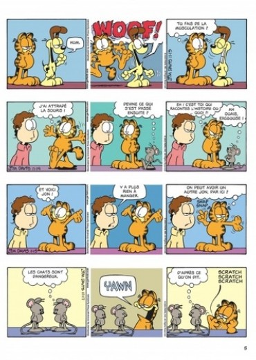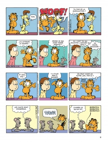 Garfield est prêt à tout pour réussir à manger toujours plus ! Il est capable de se donner un air gentil tout plein, et même de se déguiser en un animal symbolisant la tendresse et la douceur... Mais attention : le chat cynique que l'on a appris à adorer perfectionne sa technique de glouton, et n'en finit plus de martyriser son maître. Bref : il se surpasse !