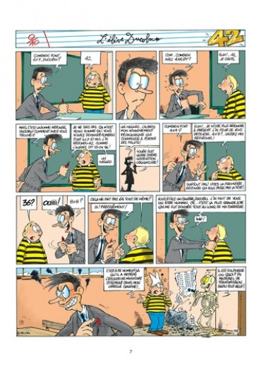 Pour Ducobu, notre irréductible «z'héros» que nombre d'écoliers rêvent d'imiter, mais auquel aucun n'oserait ressembler, la liste des bévues s'allonge. Que les chiffres se multiplient, s'additionnent, se soustraient et se divisent en pagaille aux cours de maths, rien de plus logique. Mais s'il viennent en plus embrouiller l'Histoire, cela provoque immanquablement des histoires ! Surtout lorsque, plus hargneuse que jamais, votre voisine de classe Léonie omet sciemment de vous signaler que l'instit vient de passer d'une matière à l'autre. Alors, forcément, quand un 1515 vous arrive tel un uppercut en pleine sieste, cela surprend plus qu'un coup de massue à la bataille de Marignan... Et cela vous dérègle le compteur !